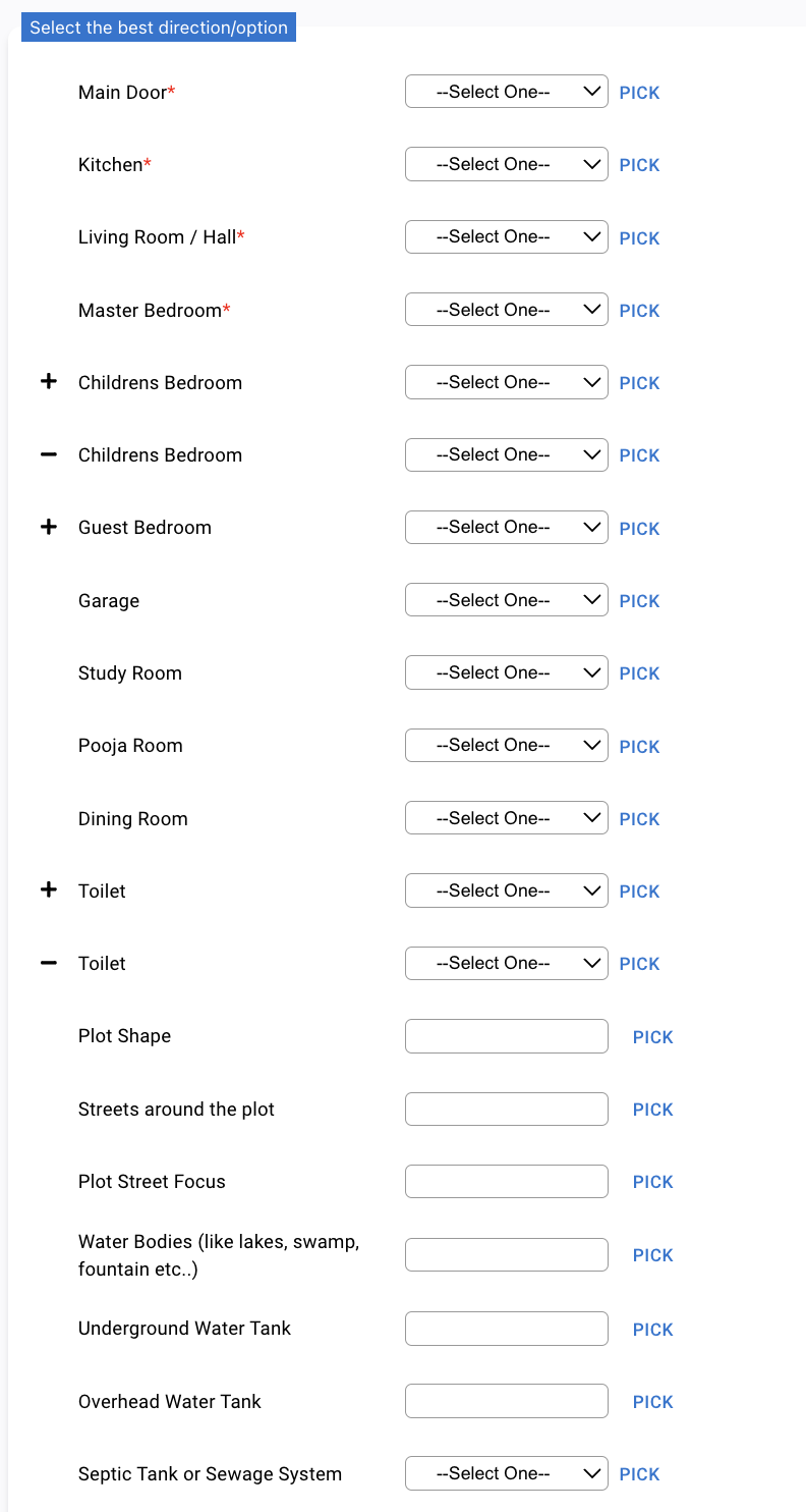 Our Vastu Calculator performs a meticulous evaluation, assessing key elements that influence the energy dynamics of your home: